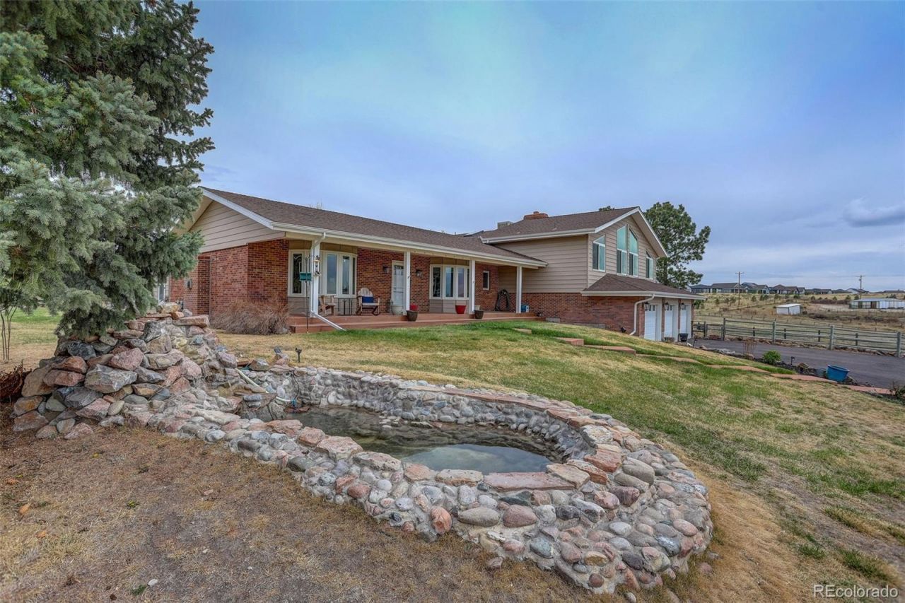 Bask in commanding views from Pikes to Longs Peak at the 5-acre Rancho Cielo (Sky or Heaven). This estate offers a blend of modern updates with timeless charm, creating a retreat that feels both elevated and warm! The lovely living room welcomes you with a cozy fireplace and large bay windows that perfectly frame the mountains. The kitchen/dining area share the same breathtaking panorama through their own bay windows. The beautifully refreshed kitchen offers granite countertops, a large island, stainless steel appliances, updated lighting, and a walk-in pantry. Next, step into the homes showpiece: an impressive 1,400-sq-ft great room designed for unforgettable entertaining. This space features a full wet bar, a dramatic floor-to-ceiling fireplace, and surround sound. French doors open to a private outdoor oasis with TREX deck, hot tub, and a gas grill?perfect for gatherings or quiet evenings under a star-filled sky! Upstairs, the primary suite has vaulted ceilings, bay windows with plantation shutters, attached bonus space, and more mountain vistas! The en-suite bath includes a soaking tub, separate shower, dual vanities, and generous closet space. Two additional bedrooms and baths complete the upper level. The lower level has versatile space ideal for multi-generational living, office, or bedroom - with cozy fireplace sitting area and nearby bath. Downstairs is another spacious bedroom or bonus room with closet and egress. Outdoors, enjoy the serene covered front porch year-round while watching wildlife or stunning sunsets! Equestrian amenities include a 2-stall barn, fenced pastures, and access to neighborhood bridle paths. The 3-stall garage includes an EV charger, and 1-acre yard features an electric fence. Newer solar panel system is owned! Located minutes from downtown Parker and E-470, this property is quick access to DTC, downtown and endless recreation. Rancho Cielo offers a rare opportunity to own a sanctuary with unmatched views! More photos 4/2