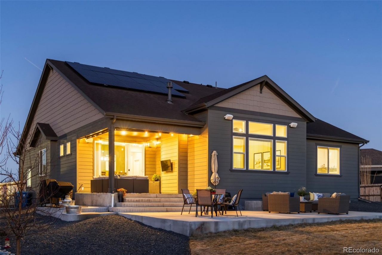 Welcome to this exceptional ranch home in popular Buffalo Run, offering over $280,000 in builder and after-market upgrades. This outstanding homes features begin with one of the largest lots (.38 acres) offered in the community, professionally designed and offers privacy and room to grow. ***DONT MISS THE CINEMATIC VIRTUAL TOUR FOR A CLOSER VIEW*** The amazing professionally finished basement adds 1800 sq. ft. of living space (plus, 442 of storage). Features included ambient coved ceiling accent lighting, 2 bedrooms, stunning 3/4 bath, enormous Rec Room, Gym area w/Finnish Sauna (~$9000K) and windows are egress. This home has been designed for a buyer with the most distinctive taste and expecting the finest custom upgrades available. The upgraded Gourmet kitchen is a chefs dream w/premium appliances/upgraded cabinet package/slab granite/double convection ovens/gas cooktop/huge breakfast bar and adjacent dining area. An open concept floor plan allows flow into the dramatic Great Room offering with soaring ceilings, stone surround gas fireplace, built-in surround sound speakers and a wall of windows, overlooking the huge backyard. Other highlights - main-level office w/French doors, custom cubby storage, upgraded laundry room, Luxury Vinyl Plank/main level brand new carpet, 5 bedrooms, 4 baths, indoor and outdoor speaker systems. Your Primary Suite is complete with a millwork accent wall, natural light and a spa-inspired bath showcasing elegant tile, large soaking tub, oversized shower, dual vanities and expansive walk-in closet. Secondary bedrooms are generously sized with large closets and high ceilings. ***See the Room Description section for more info*** The beautiful exterior has over $80K in landscaping, multiple patios added, covered entertainment space w/speakers, gas line, sprinkler system and the playset is included. Prime Cul-de-sac location, solar system installed (lease assumption) and low HOA FEE ($31.00/MO), a complete this turnkey opportunity.