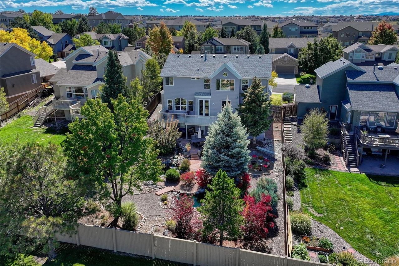 Perfection in Canterberry with a backyard like no other! Extensive updates throughout this 5 BR/4 BA/3 Car home with finished walkout basement. RECENT UPDATES: Class 4 roof, exterior paint, front porch decking (2020), back deck (2025). RENOVATED KITCHEN Fully updated with white cabinetry, under cabinet lighting, stainless appliances, JennAir 6-burner gas cooktop with hood, quartz countertops, center island with seating and storage, coffee bar, and floor-to-ceiling pantry with pullouts, with views overlooking the backyard. DINING/LIVING Entertaining spaces with open floor plan. FAMILY ROOM: Comfortable space with gas fireplace, custom mantle and tile surround. MAIN FLOOR BED/BATH Ideal setup with ¾ bath and custom shower. PRIMARY SUITE Vaulted ceilings with mountain views. Ensuite features heated floors, standalone tub, large walk-in shower with bench and multiple showerheads, custom tile, dual sinks with storage, separate water closet and walk-in closet. UPPER LEVEL Two addtl bedrooms, updated full bath, and spacious loft. BASEMENT Designed for flexibility or multigenerational living with family room and gas fireplace, bedroom, large ¾ bath, wet bar/mini kitchen with two fridges, wine fridge, ice machine and dishwasher, plus bonus flex space for office, gym or hobbies. BACKYARD: Thoughtfully designed with ponds, winding paths, multiple seating areas, one wood-burning and two gas fire pits, mature landscaping, covered patio and deck, plumbed gas line, and sidewalk access to front. Fully integrated Rachio smart irrigation system manages watering across the entire property with app-based control for efficiency. COMMUNITY: Add popular Canterberry on your list for its low HOA dues covering community pool, tennis, trash/recycling and miles of trails with easy access to downtown Parker. All in the Legend HS feeder HOME EXTRAS: South-facing driveway, Pella patio door, updated lighting, no carpet on main or basement, custom window coverings, Ring doorbell & smart thermostat.