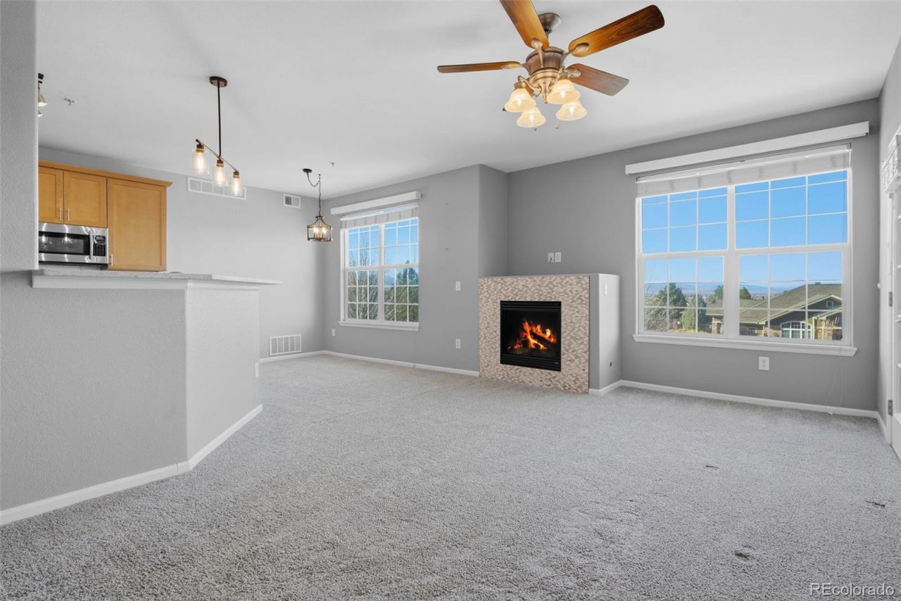 Welcome to 2800 Blue Sky Circle #2-208 in Erie, Colorado, a beautifully maintained 2-bed, 2-bath condo offering turn-key living, modern upgrades, and sweeping mountain views. This open-concept home features a bright dining area, granite countertops in both the kitchen and bathrooms, oak cabinets with stylish hardware, stainless steel appliances, a tile backsplash, and brand-new carpet installed in 2024. Each bedroom opens to its own private deck, and ceiling fans throughout help keep the home cool and comfortable. Updated light fixtures brighten every room, while a cozy tiled fireplace anchors the living space with warmth and charm. Major systems have been taken care of with a new water heater and furnace in 2025, plus the convenience of in-unit laundry. Nestled in the sought-after Blue Sky at Vista Ridge community, residents enjoy a pool, fitness center, volleyball courts, walking paths, and nearby parks. The location is ideal?close to Colorado National Golf Club, Eries shopping and dining, scenic trails, and just minutes from Highway 7, I-25, and E-470 for easy commuting. Whether youre a first-time buyer, investor, or house-hacker, this spotless, freshly cleaned home delivers comfort, flexibility, and the best of Erie living.