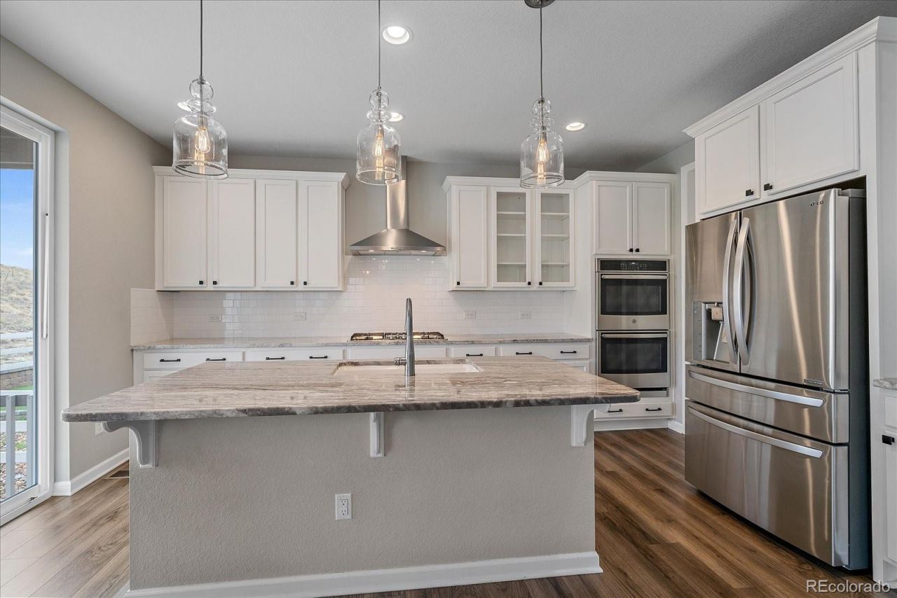Beautifully updated single-family home in the highly sought-after Crystal Valley Ranch community! This exceptional 4-bedroom, 4-bathroom residence has been meticulously maintained and thoughtfully upgraded, offering both style and functionality. Inside, youll find gorgeous luxury vinyl flooring and brand-new carpet throughout, creating a fresh and inviting atmosphere. The upgraded kitchen is a true centerpiece, featuring slab granite countertops, a stylish backsplash, stainless steel appliances, range, hood, double-oven, a walk-in pantry, pendant lighting, and a spacious island with seating?perfect for everyday living and entertaining. The kitchen flows seamlessly into the dining area and expansive family room, providing an open and comfortable space to relax. Upstairs, the incredible primary suite offers a private retreat with a large walk-in closet and a beautifully updated bathroom showcasing marble countertops, luxury vinyl flooring, upgraded lighting, and an impressive glass shower with marble flooring. A dedicated main-floor office with upgraded French doors provides an ideal work-from-home setup. The finished basement adds even more versatile living space, complete with an additional bedroom, bathroom, and an open area perfect for a game room or recreation space. Step outside to enjoy the thoughtfully designed backyard, featuring a covered patio, full fencing, and low-maintenance artificial grass?perfect for entertaining or unwinding. Additional exterior upgrades include a convenient sidewalk extending from the driveway around the home and an extended patio with steps. Located within walking distance to Rhyolite Regional Park and offering easy access to trails, shopping, and dining, this home is also part of the highly acclaimed Douglas County School District. With close proximity to I-25, youll enjoy quick access to downtown Castle Rock, the Denver Tech Center, and C-470, making this home an ideal blend of comfort, convenience, and modern living.