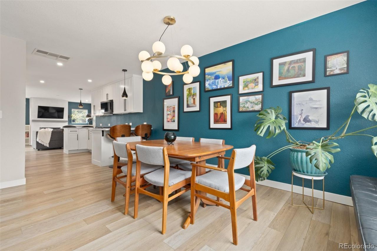 Beautifully remodeled University Hills ranch with an open, inviting floor plan. The bright, airy layout is perfect for entertaining, with the dining area, kitchen, and living room flowing seamlessly together. The kitchen offers generous counter space, including a convenient seating area for two.The living room is anchored by a cozy fireplace and built-in bookshelves, with sliding glass doors that open to a spacious backyard featuring a covered patio?ideal for indoor-outdoor living.The thoughtfully designed layout includes three bedrooms and two bathrooms all on one level, along with a custom laundry nook for added convenience. Parking is a breeze with an attached one-car garage and an extended driveway that accommodates multiple vehicles.Located in the highly sought-after University Hills neighborhood, this move-in-ready home is just steps from the Highline Canal and offers easy access to I-25 and the light rail.