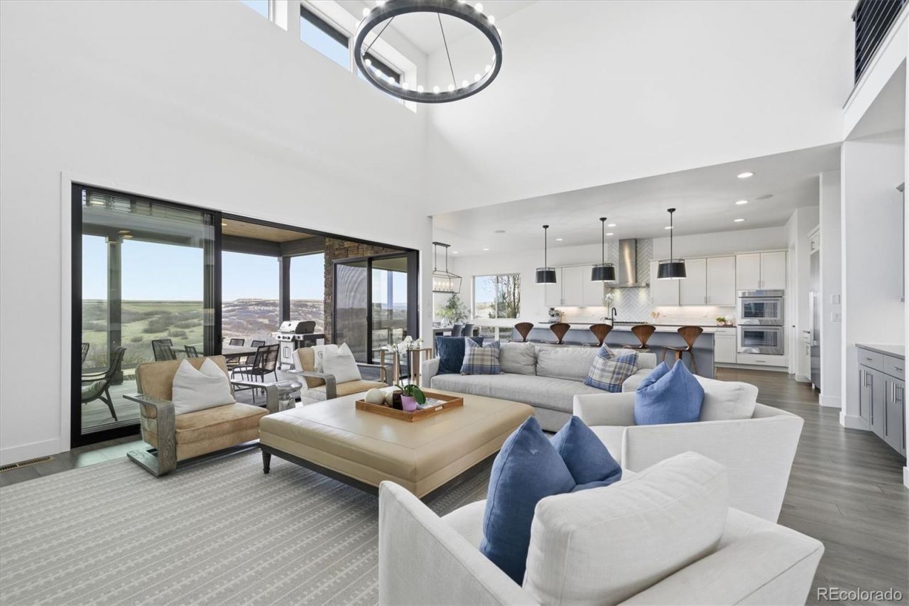 Stunning Semi-Custom Estate in The Canyons is made for living, built for entertaining. Tucked into a serene cul-de-sac within one of The Canyons most coveted enclaves, this extraordinary home is among only 24 ever offered in the exclusive Berkeley Canyonpoint Collection. This home has 5 bedrooms, 6 baths, and a oversized 4 car garage. From the moment you arrive, the craftsmanship speaks for itself. Hand-troweled walls, soaring ceilings, and signature black windows flood every level with natural light while framing breathtaking views of open space and trails. Designer finishes strike the perfect balance between refined elegance and livable warmth. The main floor features a glass-walled office, a dramatic two-story great room with gas fireplace and triple sliding glass door to your backyard oasis. The chefs kitchen is stunning with an oversized island with pendant lighting, 6-burner gas range, built-in refrigerator, wall oven, and large walk-in pantry. A main-floor ensuite bedroom is perfect for guests. Upstairs, the primary suite is a sanctuary that redefines retreat, with a gas fireplace, open space views, zero-entry shower, free-standing tub, walk-in closet connecting directly to the laundry room. A flex room adapts to your lifestyle: a second home office, a playroom, or a private retreat. The two additional bedrooms each offer walk-in closets and ensuite bathrooms. The finished lower level is an entertainers dream: grand rec room, kitchenette, private golf simulator, a guest bedroom, bathroom, generous storage room for all of lifes extras. Outside you will enjoy a spacious covered patio, sweeping views, 1/4 acre lot. An oversized 4-car garage completes the picture. This is more than a home, its a lifestyle. Welcome to The Canyons. Enjoy resort-style amenities: The Exchange coffee house, The Canyons restaurant, pool, fitness center, pickleball courts, trails, and more. Conveniently located off I-25 and Castle Pines Parkway. https://tinyurl.com/6656canyonpoint
