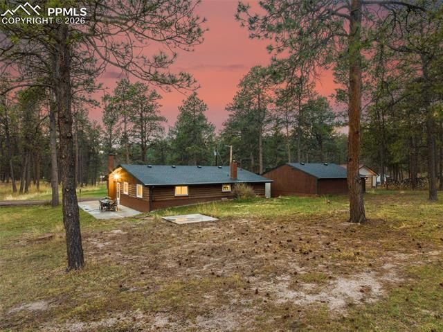Tucked away on nearly 5 acres in the heart of Black Forest, this beautifully updated 2-bedroom, 1-bathroom home offers the perfect blend of privacy, charm, and modern upgrades—all just minutes from Woodmen Road and Black Forest Road. Surrounded by mature Ponderosa pines and open grassy meadows, the property provides a peaceful, secluded setting while still being close to everyday amenities. Thoughtfully updated throughout, the home is move-in ready and offers both comfort and peace of mind. Recent improvements include a brand-new Class 4 impact-resistant roof, updated electrical, all new windows, and added ceiling lighting with dimmers in the main living areas and bedrooms. The kitchen features updated flooring and like-new appliances, including a never-used washer and dryer. The property has also been fully mitigated for asbestos. Inside, you’ll find a bright, inviting living space filled with natural light, enhanced by an additional living room window. The home maintains its classic Black Forest charm with modern finishes throughout. Outside, enjoy space and functionality with a 2-stall barn complete with tack room, water, and electricity—perfect for horses or hobby farming. The 2-car detached garage offers ample storage and workspace, while the recently inspected and cleaned chimney complements the cozy potbelly fireplace for crisp Colorado evenings. The well and septic systems have both been inspected within the past year, and privacy fencing enhances the sense of seclusion. Located near Section 16 and Pineries Open Space, you’ll have access to over 1,500 acres of trails for hiking, horseback riding, and outdoor recreation. With no HOA, room for animals, and a setting that truly captures the beauty of Black Forest, this property offers a rare opportunity to experience Colorado living at its finest.