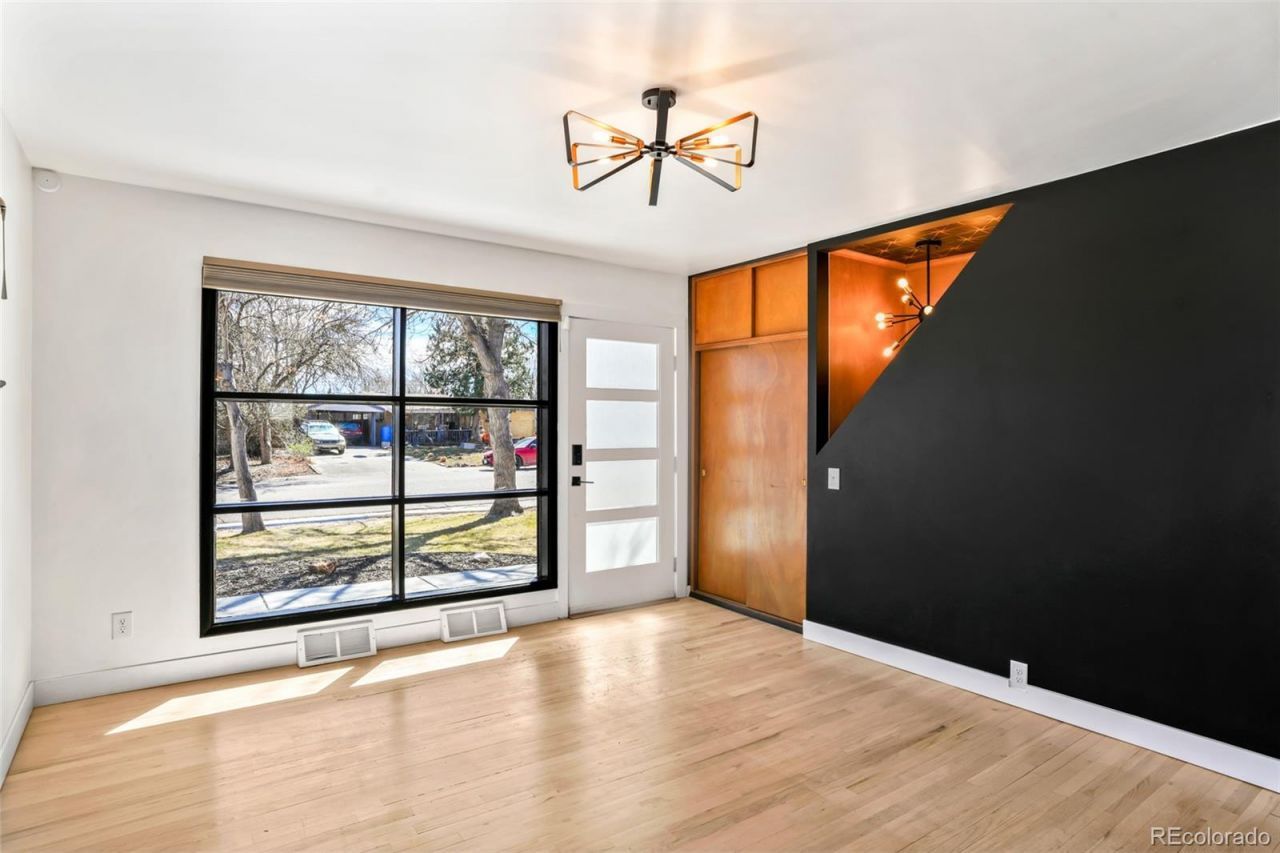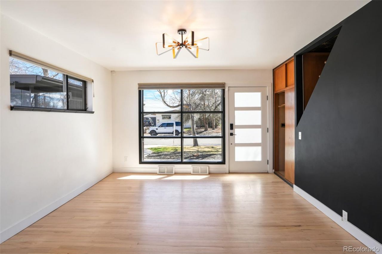 A standout mid-century modern home in Arvada Acres just minutes from Olde Town Arvada, where timeless architecture meets thoughtful modern updates. This character-rich Arvada home embraces classic MCM design with clean lines, warm wood tones, statement lighting, and original architectural details that create a space full of personality and style. The main living area is filled with natural light from a large picture window and showcases beautiful hardwood floors and built-in wood accents that highlight the homes mid-century roots. The open layout flows into a stylishly updated kitchen featuring stainless steel appliances, sleek cabinetry, geometric tile, and a design-forward backsplash that complements the modern aesthetic. Five bedrooms and a finished basement provide exceptional flexibility for todays lifestyle. The lower level includes a spacious recreation room with a beverage bar and built-in cabinetry, ideal for entertaining, movie nights, working from home, or creating a lounge or studio space. Both bathrooms feature bold mid-century inspired design with striking tile and modern fixtures. Outside, the private backyard framed by mature trees creates a peaceful setting for summer evenings, weekend gatherings, or quiet mornings at home. Major system updates include a new AC, furnace, and water heater installed in 2024. The roof was replaced in 2017, the garage roof in 2023, and gutters were replaced in 2023, offering peace of mind for years to come. Transferable solar panels with no payments for the next 14 years help keep energy costs low, and an integrated security system adds convenience. Located minutes from Olde Town Arvada, residents enjoy easy access to restaurants, breweries, coffee shops, boutiques, farmers markets, parks, and the G Line light rail for quick travel to downtown Denver and Union Station, with convenient routes to the mountains for weekend adventures.